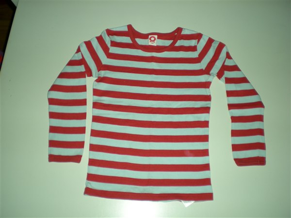 Bluse, rød/lys blå, str. 122. Brugt få gange. 75kr.