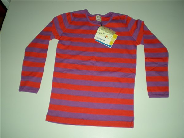 Bluse, rød/lilla, str. 128. Ny. 75kr.
