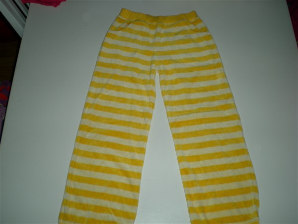 Velour bukser, gul/vanille, str. 128. Nye. 100kr.