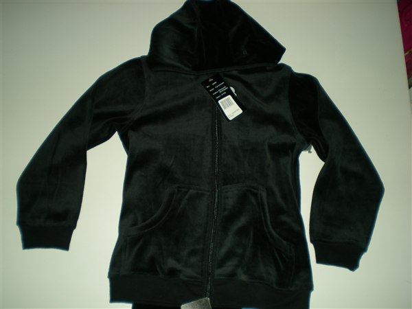 5. Sort velour-sæt fra Patrick, str 128. 75 kr.