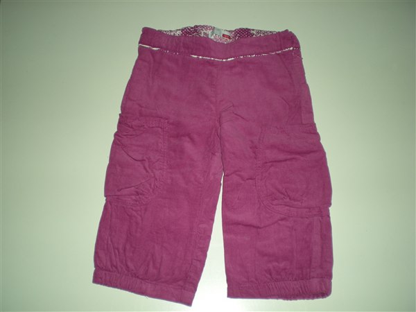 12. 3/4 bukser i babyfløjl, str 128. 50 kr.