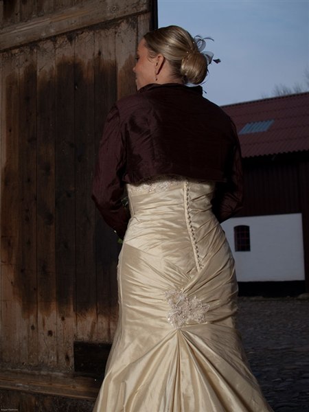 Bolero og facinator som ses på billedet kan også følge med, disse har en samlet nypris som er ca. 900,- og følger naturligvis med uden beregning og det samme gælder sløret.