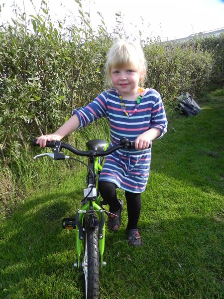 Sikken et godt billede af Stumpen, hun er altså bare fin, og så med den nye cykel. Kan hun cykle på den?