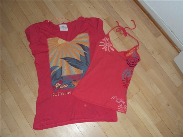 Billed 5: 2 sommer overdele fra H&M top str s og t-shirt XL, købt for 80 & 60 kr, aldrig brugt dog vasket. sælges for 30 og 20 kr, eller samlet for 40,-