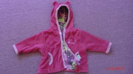 Billede 2: Pink velourtrøje/jakke fra Fransa Kids Baby i str. 62 (den nederste trykknap er i stykker- lille i str.) 30 kr.
