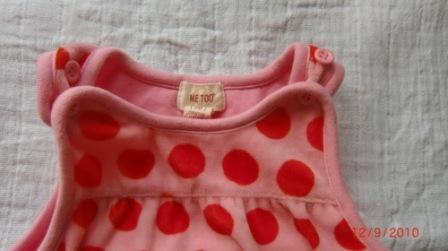 Billede 6+7: rigtig sød Me Too kjole i lyserød velour med røde prikker i str. 56 30 kr.