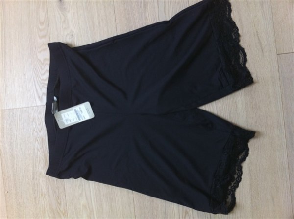 Jeg har et par ubrugte gudetrusser i str. L til salg. De ligner tynde sorte cykelshorts, med en tynd blondekant.