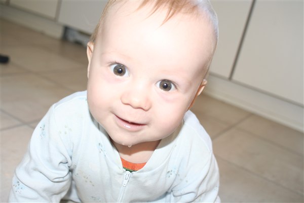 Han er 9 måneder og 9 dage i dag, sød, kær, nem hele dagen - men om natten vågner han hver anden time, så jeg er ved at gå helt omkuld af længsel efter en ordentlig nats søvn.