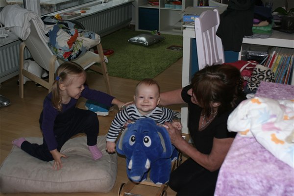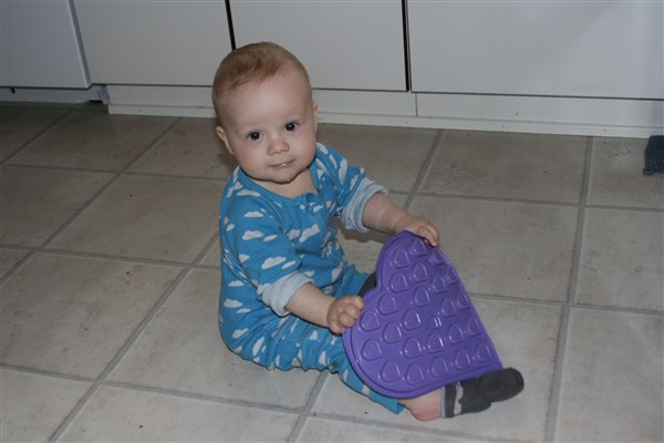 Han kan klappe - 1½ måned før NMsen I might add - og han kan kravle. Han elsker biler og ting, der triller.