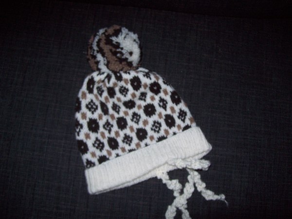 Snoren i huen er hæklet efterfølgende for, at få huen til at sidde bedre på hovedet - men kan tages af uden problemer.