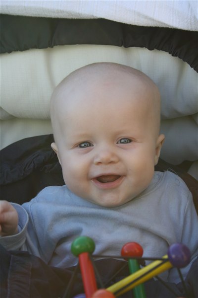 Jeg troede han var mega klar til mad, da han åd vores andres mad med øjnene fra han var tre måneder. Det var så meget at jeg havde dårlig samvittighed over at spise i hans selskab... Så da han blev fire mdr fik han noget grød, og det er så noget han endnu ikke er blevet god til. Og kartoffelmos med grøntsager i kan jeg skride langt væk med