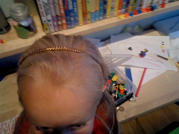 Hi hi... Har fundet en rigtig fin en idag i vores lokale børnetøjsbutik. Sådan en fin smal en med guldflet, som passer super til Line lillebitte hoved