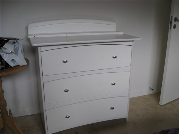 Jeg er generelt ikke til de puslekommoder, man kan få i f.eks. Babysam, for jeg synes ofte de er store og voldsomme, men det kan jo være at jeg bliver nødt til at investere i en alligevel, hvis der ikke er plads i den gamle kommode... det må tiden vise.