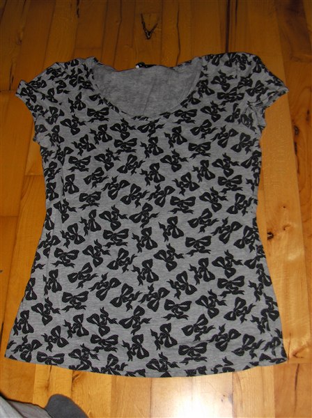 5. H&M T-shirt - grå m. sorte sløjfer - NY - 20,00