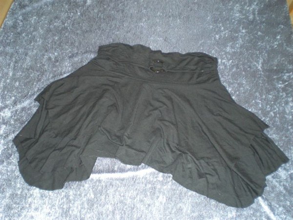 Billede 2 & 3 er en sort nederdel i utrolig behageligt stof i størrelse m/l (dog vil jeg sige en XL kan godt være i den), mærket Sisters Point.