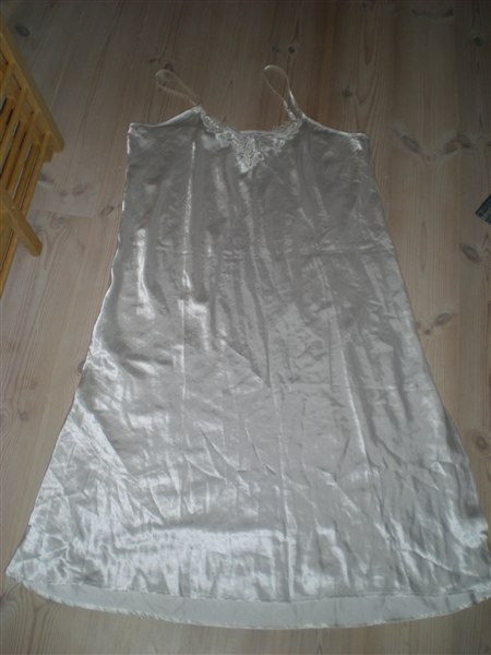 Her sælges 1 hvid silke natkjole i størrelse 50/52, aldrig brugt.