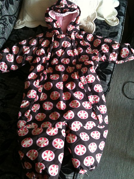 detaljer: dobbelt lynlås foran, indvendige knapper oppe ved halsen så der ikke kommer kold luft ind.