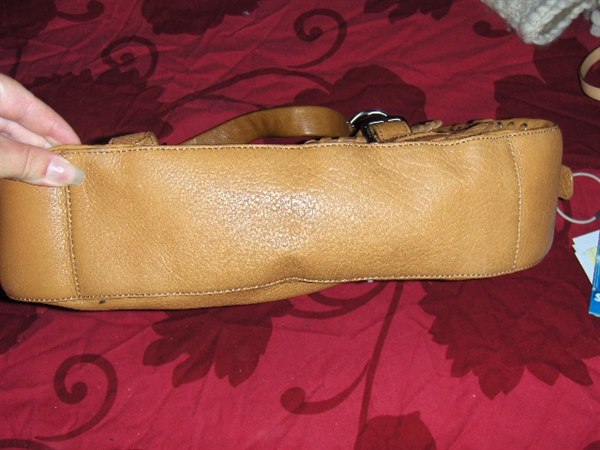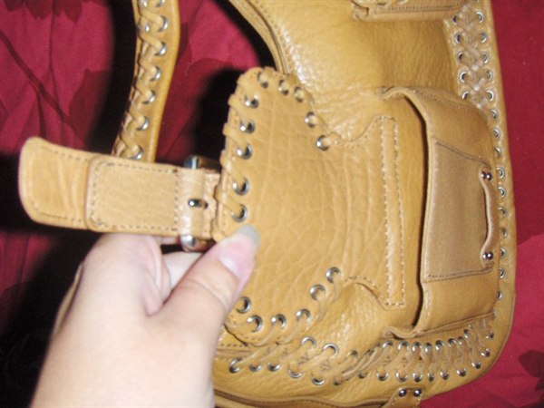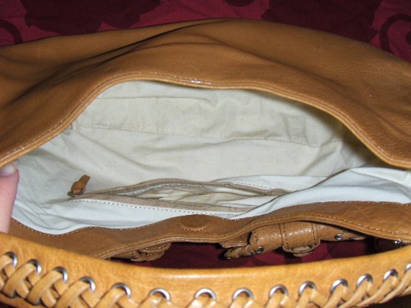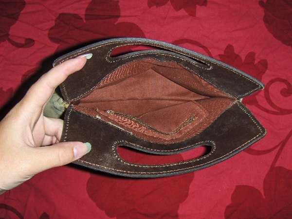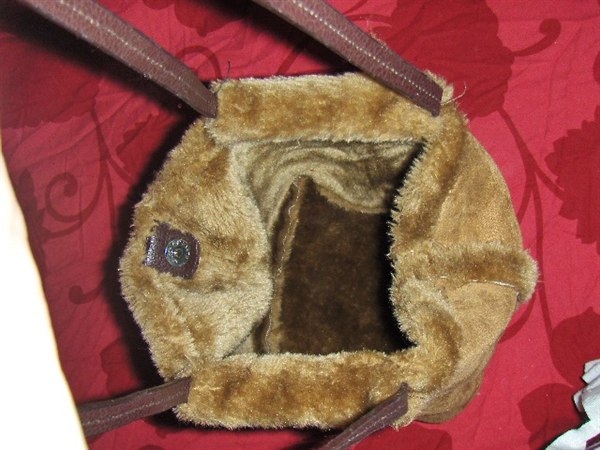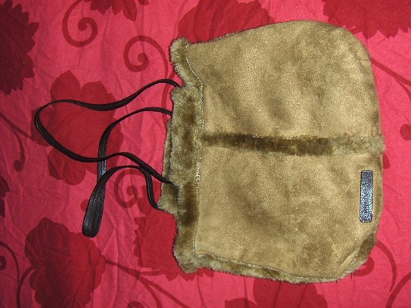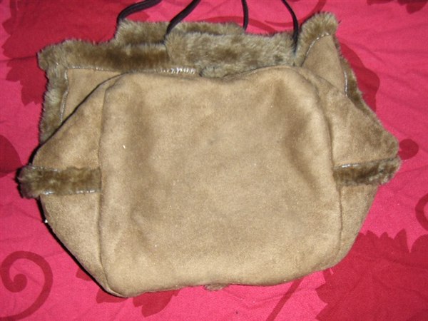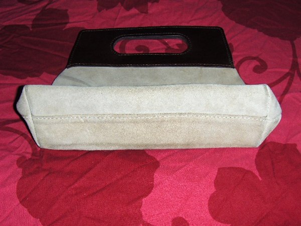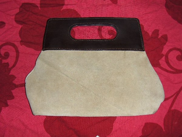 5-7. Beige Ruskindstaske med brun læder hank - Brugt få gange - 75,00 kr