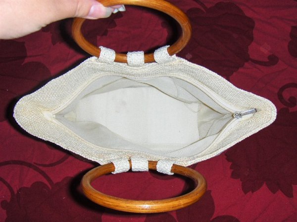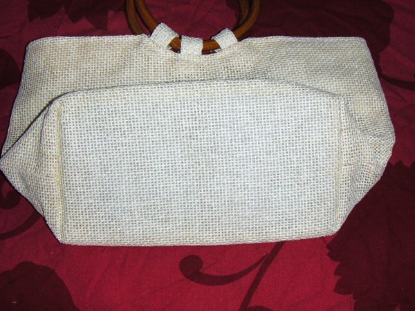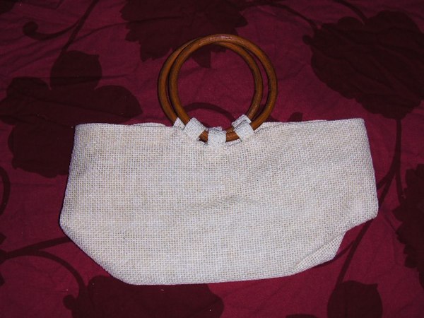 41-43. Råhvis taske med rund træ hank - Aldrig brugt - 45,00 kr