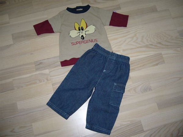 Sødt sæt (looney tunes) bestående af cowboybukser og bluse.