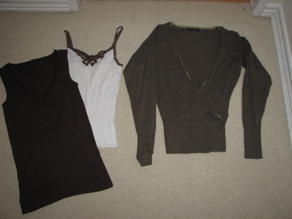 Standen på tøjet er nyt, næsten som nyt eller god men brugt. Og langt det meste er str M, ellers nogenlunde svarende dertil - bukserne hedder mest 29 og 30 i livet og ca. 32 i lænden - dog er der også trekvarte i mellem - der kan dog også forekomme en smule i S og L. Mærker er bl.a. diesel, Lipo lipo, Green house, vero moda, Signal, Esprit, Part two osv.