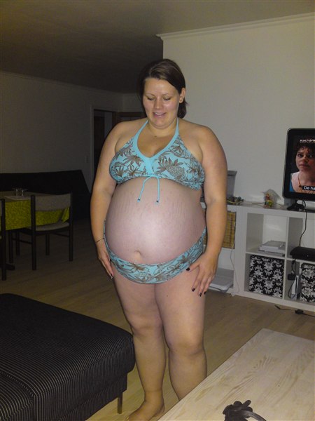 Syntes godt nok det komisk som jeg ser ud nu hehe skulle lige prøve mit badetøj her i fredags da det var meningen vi ville ud og bade i lørdags, men jeg kunne ikke få min tankini ned over maven (sådan en bikinitop der er en trøje, men det kan ikke ses da den er krøllet sammen under brysterne hehe). Vi kom ikke ud og svømme kunne ikke få mig til at gå sådan rundt hehe.