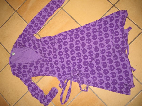 Piva skriver: Såå fed Småfolkkjole i lilla med lilla æbler.God men brugt. Byd