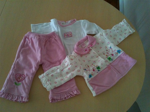 Jeg sælger dette pigesæt, som kun har været brugt et par gange. Sættet består af trøje, bukser og body. Det er str. 3-6 mdr. men er meget stort i størrelsen, så jeg vil nærmere sige 6-9 mdr. Ingen huller eller pletter.