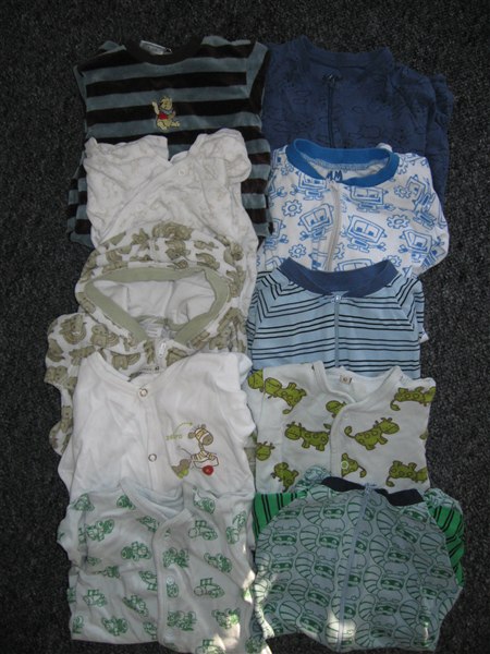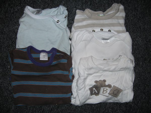 Har ikke lige overblik over hvad der er i str. 74 på stående fod, men alle mine annoncer er også på babygalleri, hvor det hele står angivet med størrelser m.m.. Mit brugernavn er det samme derinde.