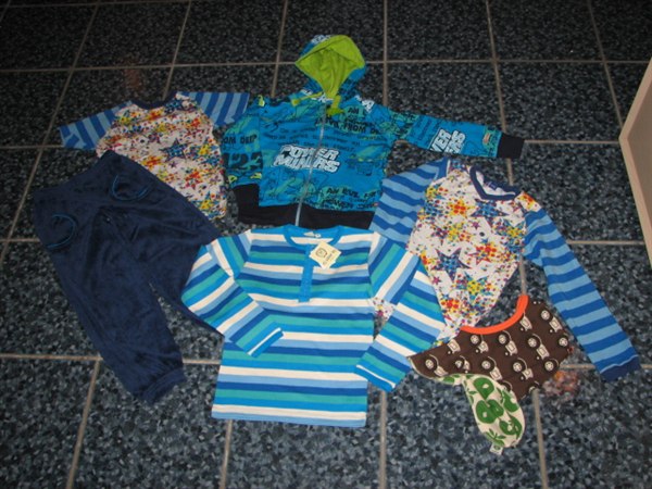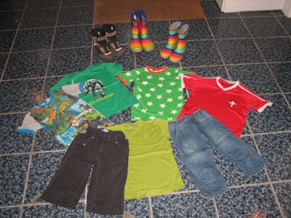 Det er en blanding med både helt nyt tøj, noget næsten som nyt og noget mere brugt. Men generalt en pæn bunke til den halv store fyr