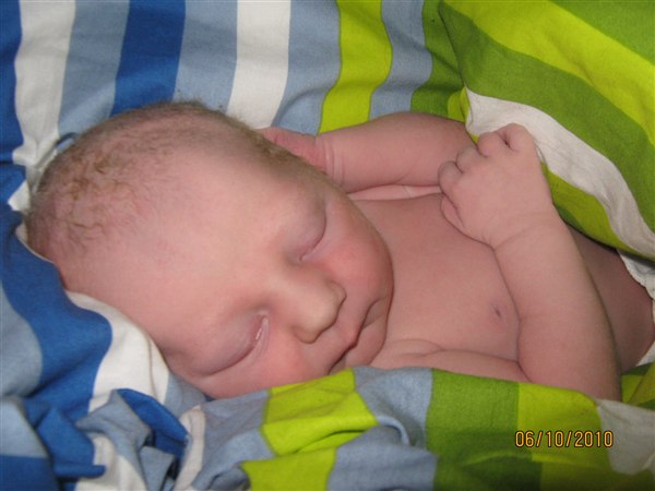 Jeg fødte ham hjemme i badekar i går aftes (06.10.10) kl. 18.56, lige som jeg ønskede