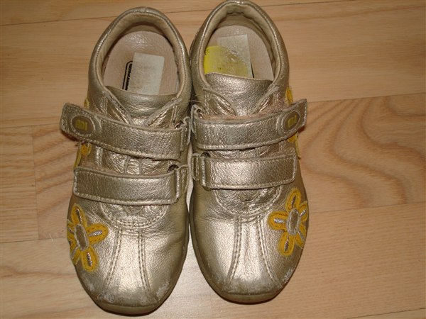 ADI sko str 25 guldfarvet med blomster ikke udtrådte..