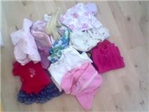 En bunke fyldt med babytøj str. 56 og str. 62en hel pose fyldt til den lille ny prinsesse.