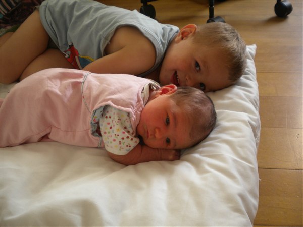 Det er bare et perfekt billede det af Simone og Mikkel, hvor de ligger på maven, søskende-billeder når de er bedst