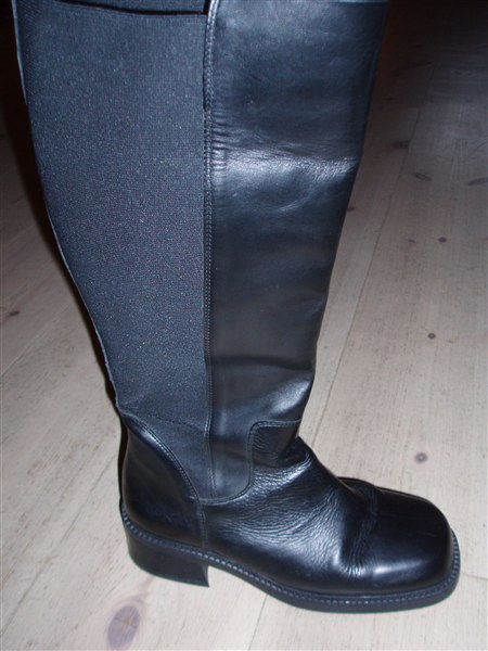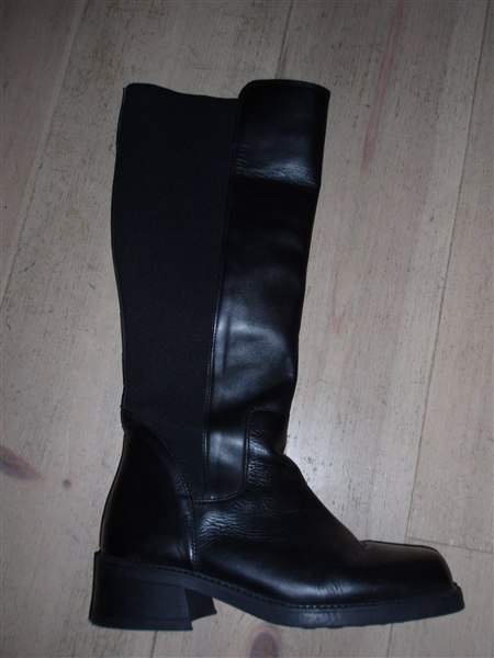 Fede sorte støvler str 40Bare ligget i skabet har aldrig brugt demForoven 37cm og ydermere elastik i begge sidder,så kan strækkes rigtig meget til store lægge:-):-9ca 3½cm hæl/flad hæl vil jeg sigeIndv ca 25cmHusker ikke nyprisByd Byd