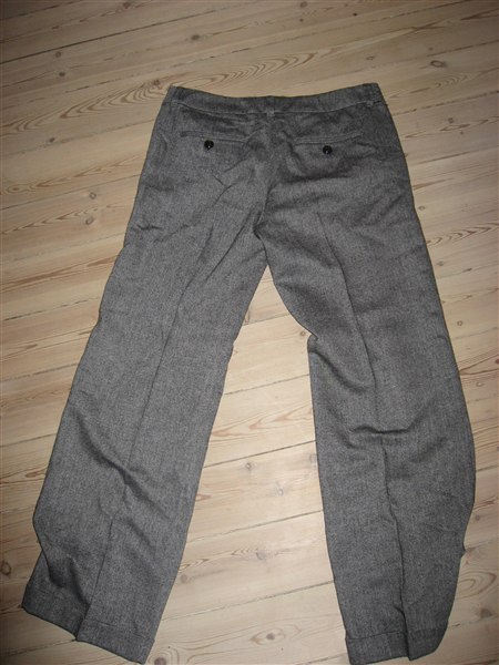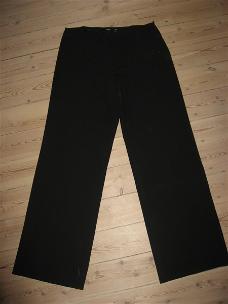 Billed 11: Sorte bukser fra Fransa, Sidder tæt ved hofterne, og bliver bredde ved benene, Str. 42.