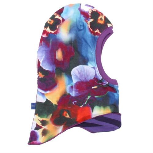 Molo elefanthue med stedmoderblomster, str 4-5år - Kun vasket!