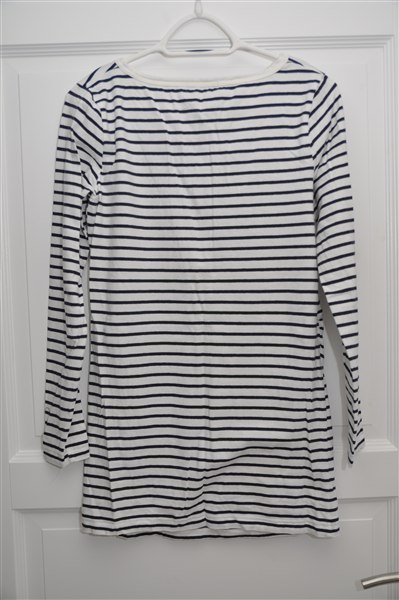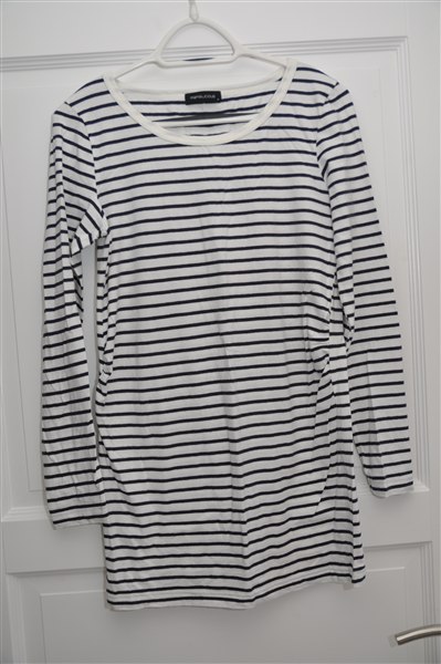 Billede 1+2: Hvid/blå stribet bluse fra Mamalicious - str. M