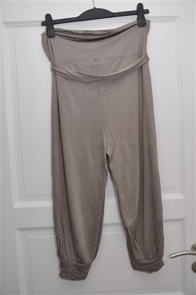 Billede 3+4: Mørke"beige" 3/4 bukser med bindebånd fra H&M mama - str. L