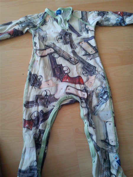 Heldragt med pistol str. 86 (med mindre plet, ikke forsøgt fjernet)