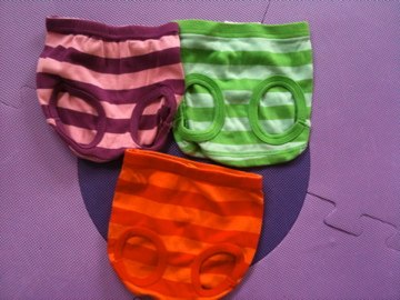 KATVIG: 3 x blebukser (lilla str 62, grøn og orange str 68): Sælges samlet for 65 kr