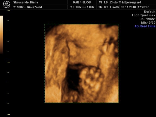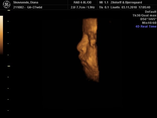 Idag har vi så været til 3D scanning og hun tjekket det hele og det så bare så fint ud de hele dog var min lille pige ikke særlig samarbejdsvillig så vi skal der ind igen på onsdag. Idag lå hun med hoved ned af og gemte sig bag sine finde hænder og vejer 948g så hun er en lille fin pige og hvis hun stadig vokser sådan kommer hun ud som en pige på 3200g det er jo fint Lucas kom ud som 3540g.