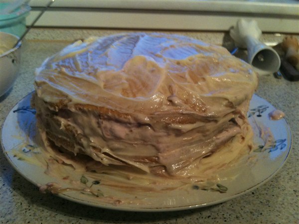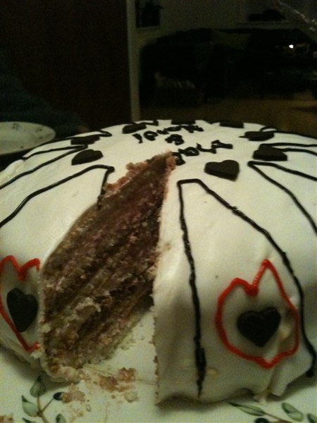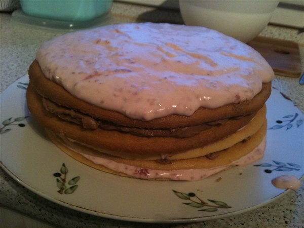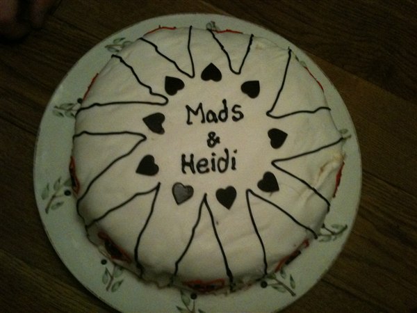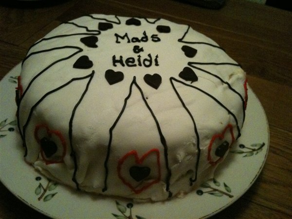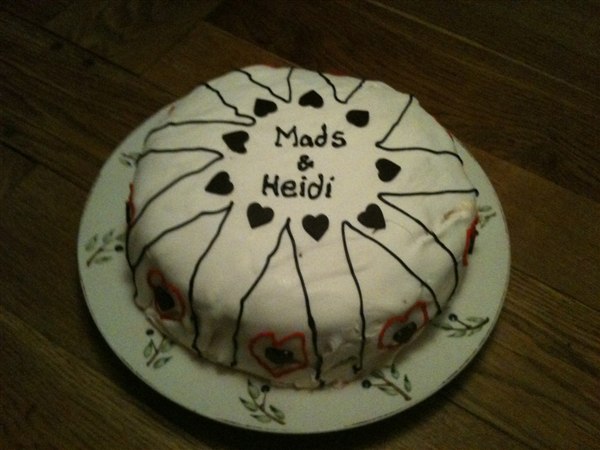 Men, jeg er SÅ stolt over den!! Den er med det der MMF og det hele, blev totalt overinspireret af alle jer dygtige Qvinder herinde at jeg gik i kast med det selv i weekenden. Den er med hindbærmouse og tobleronecreme, opskrifterne er tyv-stjålet herindefra, selvfølgelig! ;-D