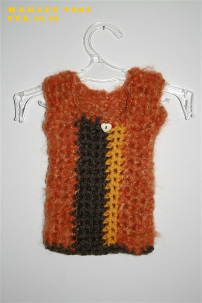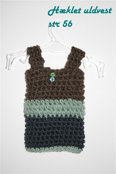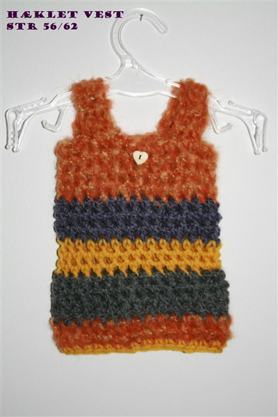 Lune hjemmehæklede veste, huer og nederdele til de små. Pr stk. 75 kr plus porto.