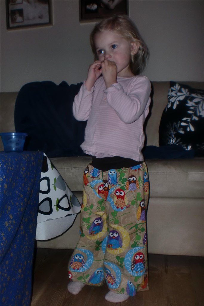 Og så tillader jeg mig lige, at vedhæfte et par billeder af min ældste datter i et par af de lækre ugle-bukser.