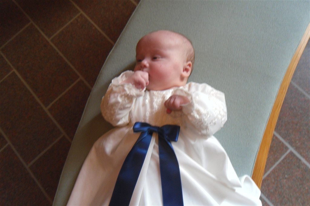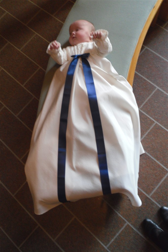 KittyGirl skriver: Lasse... han havde veste sættet på efter kjolen røg af Dåbskjolen er jeg selv blevet døbt i
