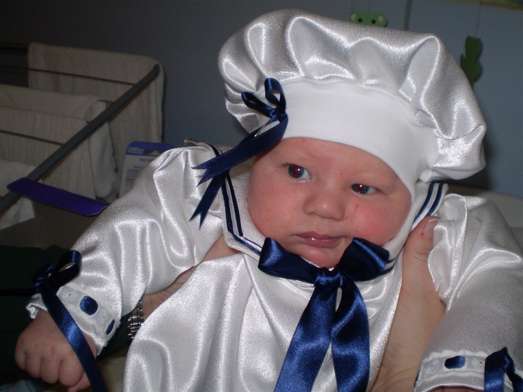 Her er min søn i sit dåbstøj - mormor havde syet en dåbsdragt til ham