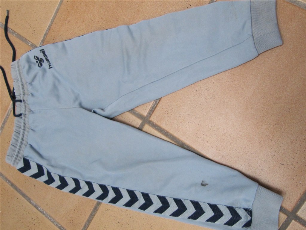 Hummel bukser str 104 - godt brugte - desværre også et par pletter. Men er der stadig mange timer i dem.