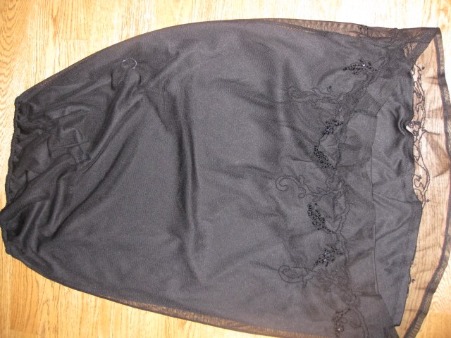 Jeg har en festnederdel til gravide til salg. Den har elastik i taljen, er helt flot sort (svært at se på billederne), er i to lag stof hvor det yderste er noget netnoget med perler hele vejen rundt nederst på den. Den koster 60 kr og ser ud som ny