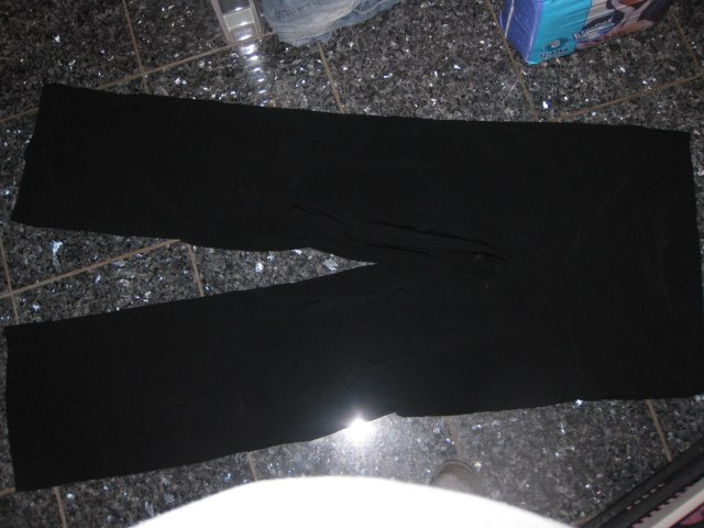 Jeg har også et par sorte bukser str 36 (lidt store, vil tro de svarer til en str 38) . Man kan godt se at de er brugte men gode til hverdag. De har elastik i taljen. Nederst på det ene bukseben er der et par små hvide pletter, på størrelse med et riskorn. De koster 25kr